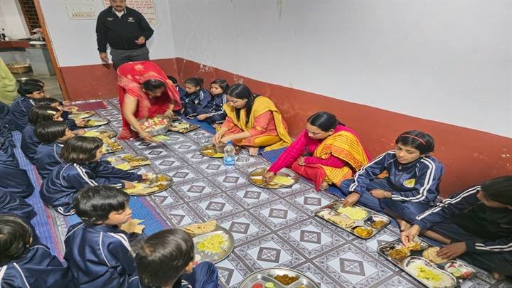बच्चों के साथ जमीन पर बैठकर किया भोजन एवं किया आश्रम की व्यवस्थाओं का निरीक्षण